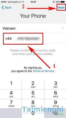 Bạn cũng tiến hành chọn quốc gia Vietnam rồi nhập số điện thoại vào để nhận mã kích hoạt