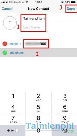 Bước 6: Lưu tên bạn bè, số điện thoại và ấn Done để hoàn tất.